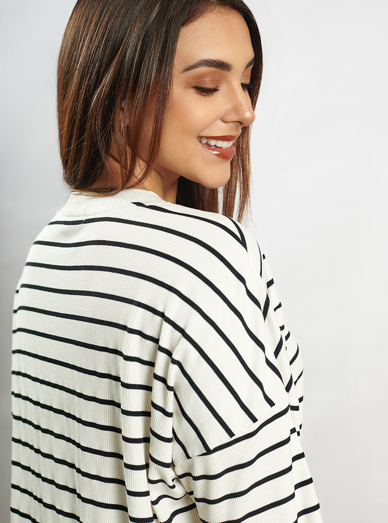 Polo oversize de algodón con diseño a rayas, ideal para un look casual y cómodo. Su estilo versátil lo hace perfecto para cualquier temporada.